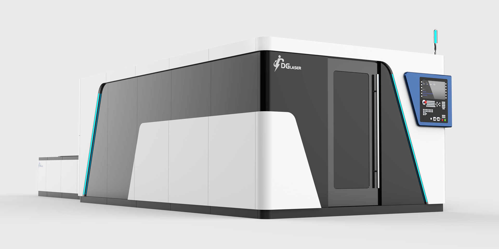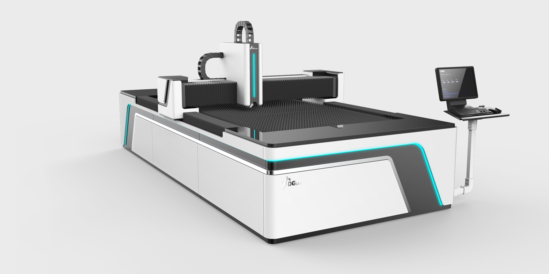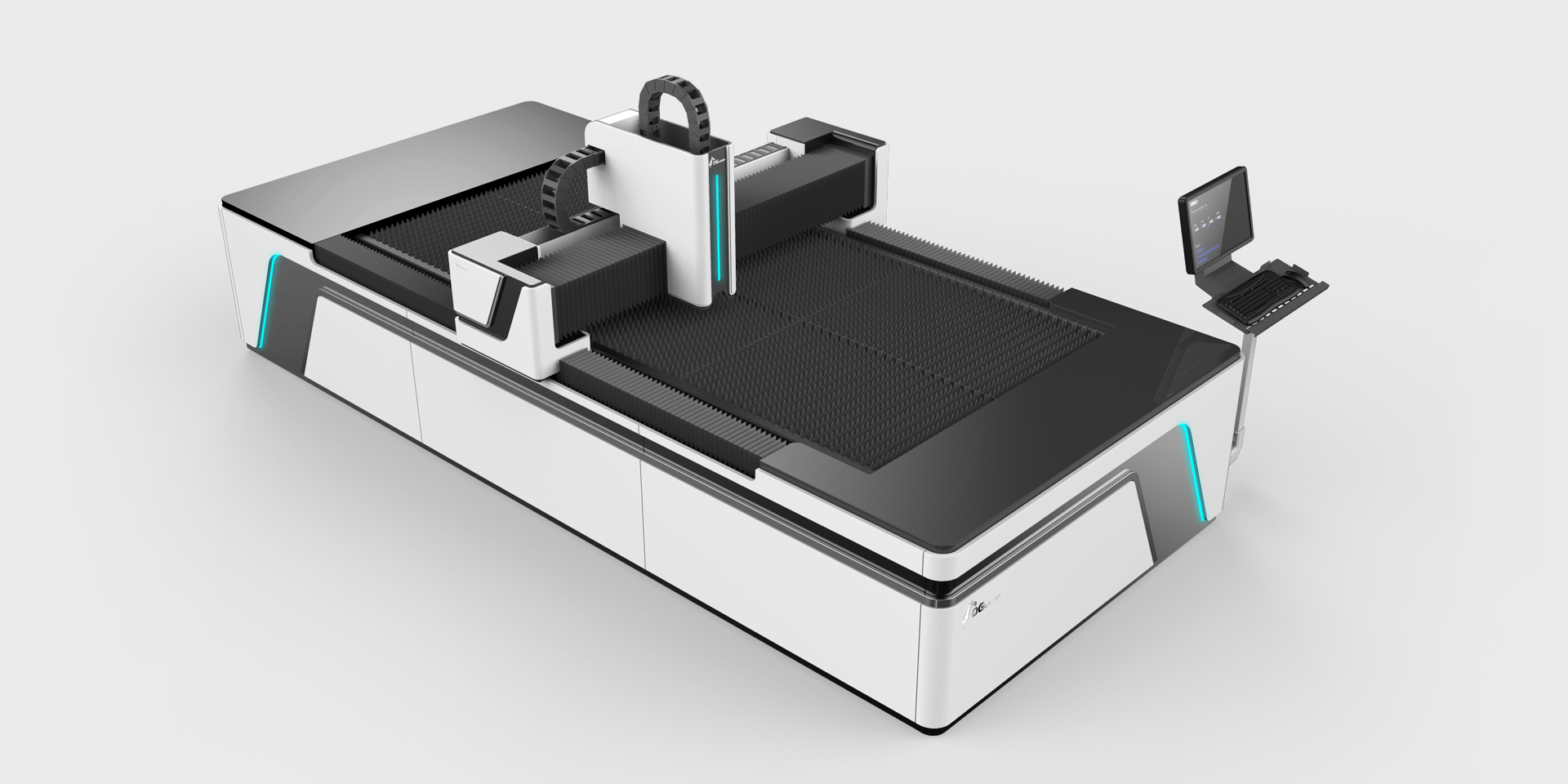 通过几何分割,将正面与侧面相关联,视觉上更为整体和流畅。同时使用亚克力与LED灯带进行点缀,打破传统设备的机械感,更符合当下审美标准,又提高了设备本身的科技感。