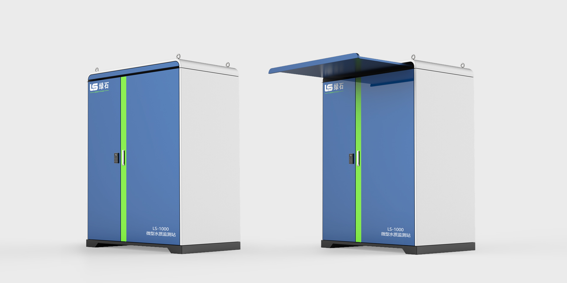 整体采用蓝绿配色,更符合水处理设备的特质。顶部钣金可抽出,方便操作人员在恶劣天气下进行维护。